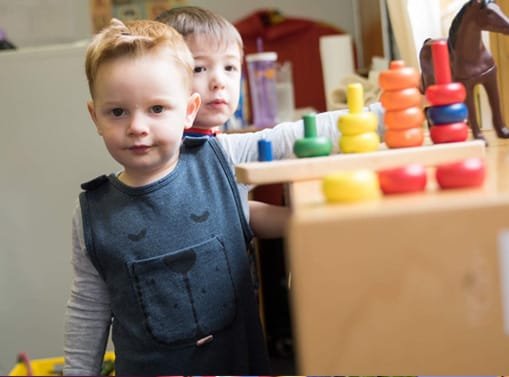 Curriculum-based learning includes stories, cooking projects, dramatic play, musical instruments, creative art, sensory play, letter games, riding toys, group time, sorting, blocks, sand and water, nature materials, and gross motor development in our outdoor fenced playground and large indoor gym.