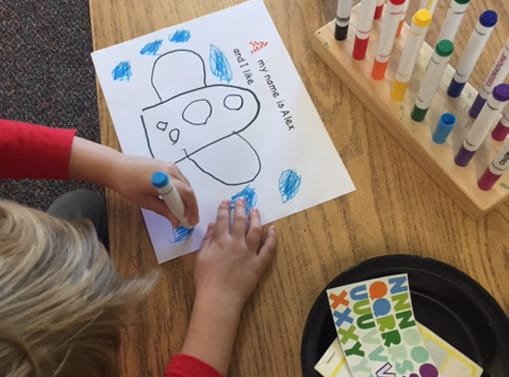 Daily classroom play centers are structured around particular themes and goals each day often include: science, math, building/construction, reading, writing/drawing, puzzles and games, dramatic play, free-choice and/or guided art, sensory exploration, playdough, music and movement.