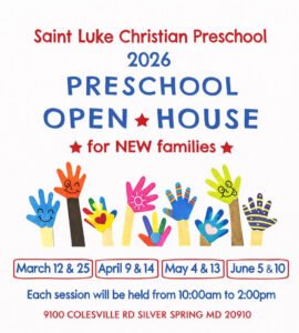 We encourage families to attend one of the scheduled sessions to see firsthand how Saint Luke Christian Preschool supports early learning through play, faith, and community.